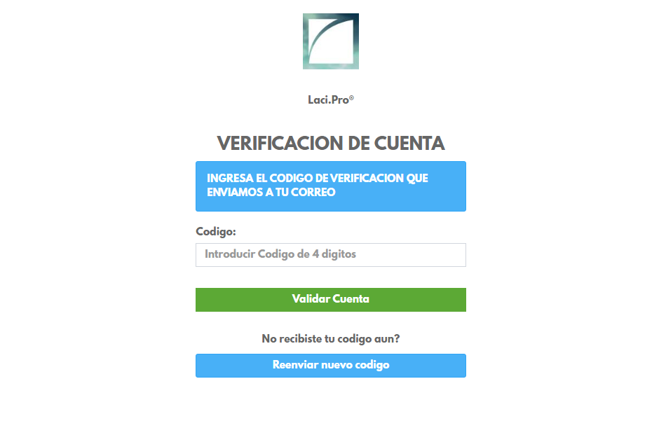 Valida tu cuenta con los 4 digitos enviados a tu correo